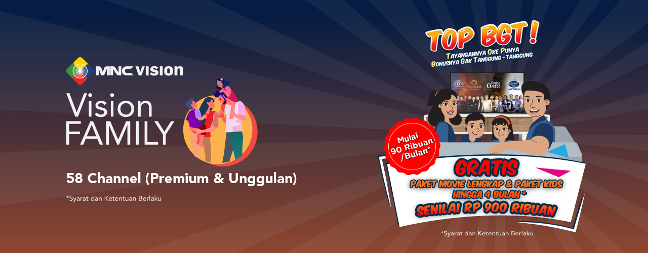 The name is a product for families, of course, you understand the complete needs of family entertainment, especially with the 4 Months BONUS Movies & Kids package! What's lacking, what is MNC Vision giving for you and your family?