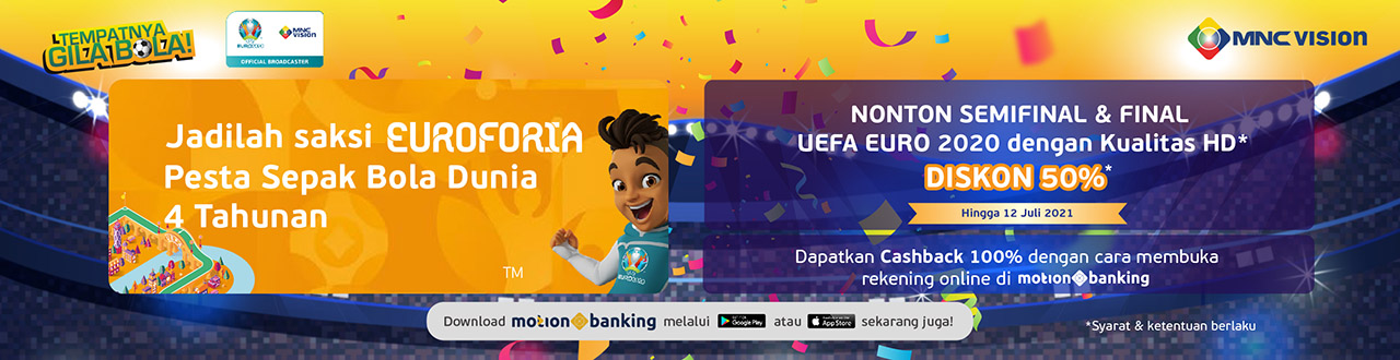 Masih ada promo menarik untuk menjadi saksi Euroforia Sepak Bola Dunia 4 Tahunan! Yuk berlangganan MNC Vision sekarang dan dapatkan diskon 50% untuk nonton UEFA EURO 2020!