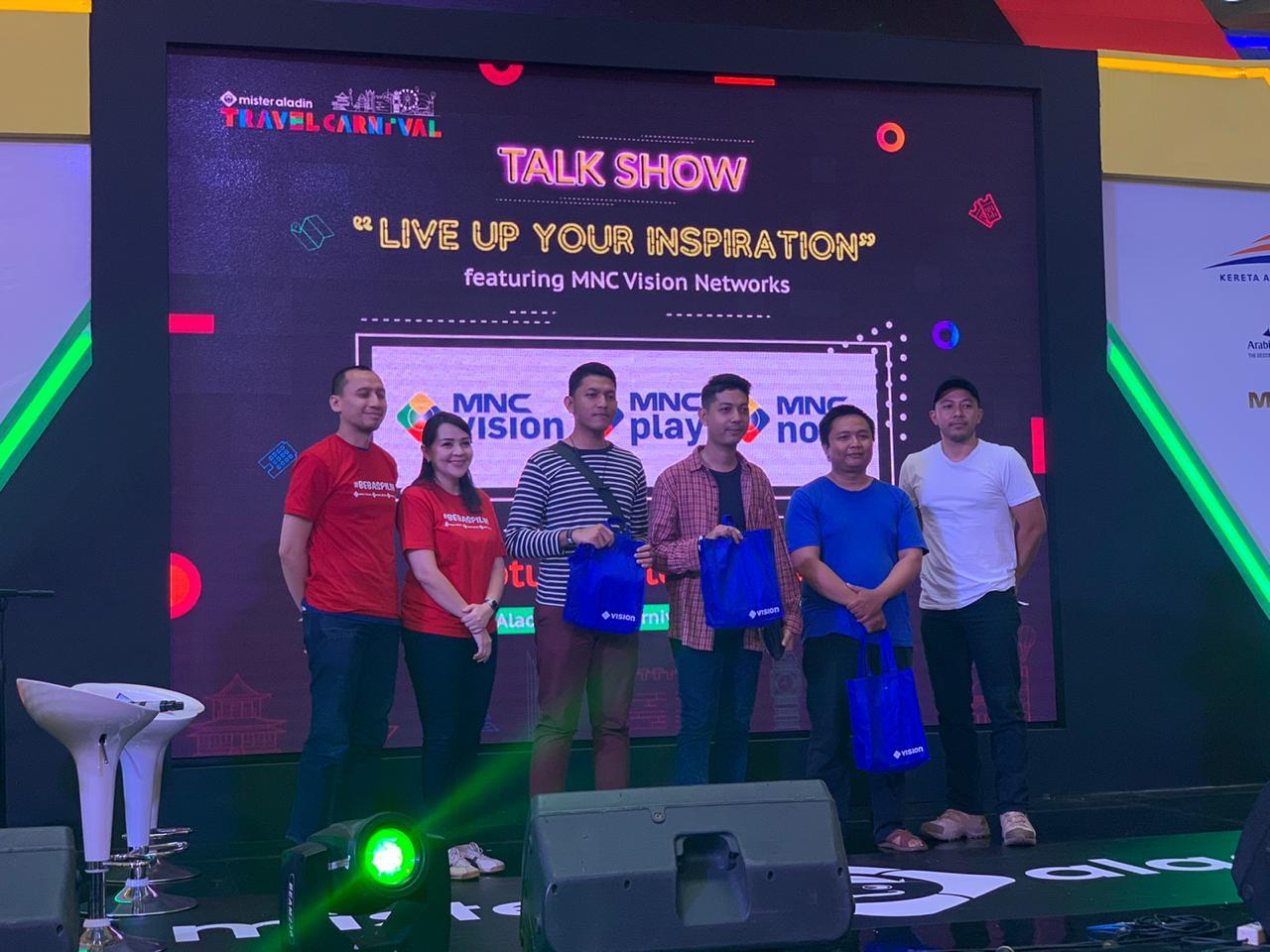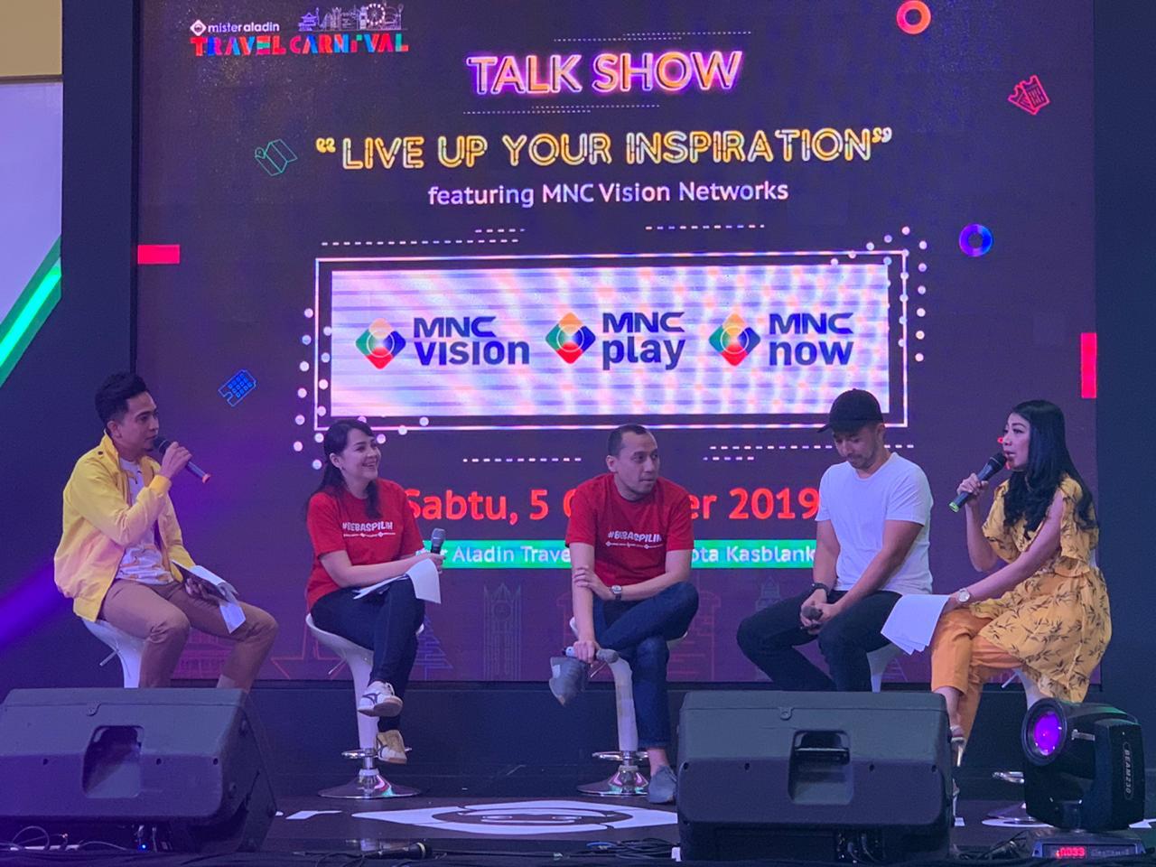 MNC Vision, MNC Play, dan MNC Now juga mengadakan talkshow di Mister Aladin Travel Carnival pada hari Sabtu, 5 Oktober 2019, pukul 10.30 – 11.30 WIB di venue Grand Atrium Kota Kasablanka. Talkshow dengan topik ‘Live Up Your Inspiration’ ini membahas seputar inspirasi travelling bersama MNC Vision, MNC Play, dan MNC Now.