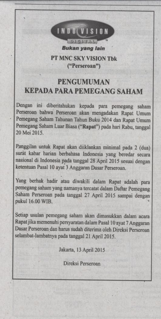 Iklan Pengumuman RUPS Tahunan dan RUPSLB 2014